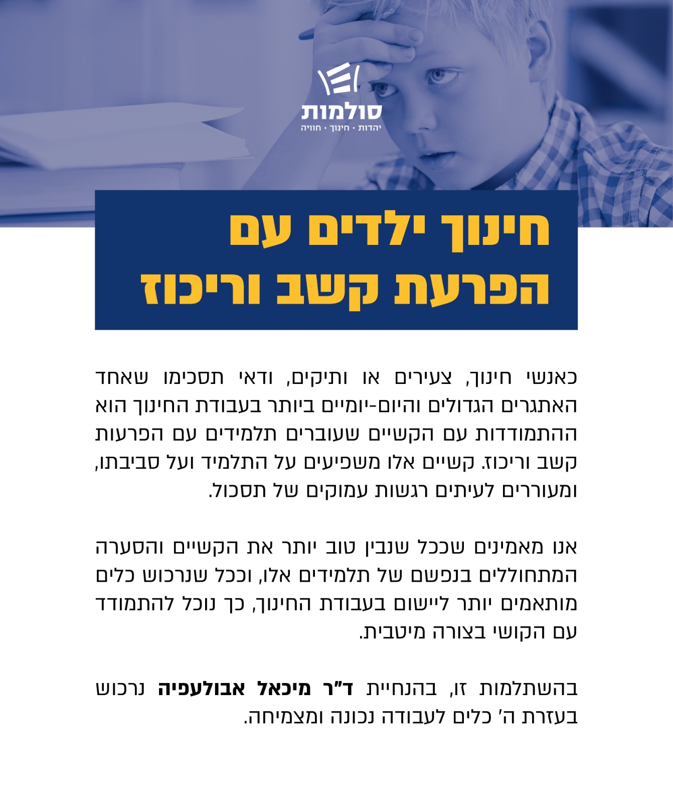 השתלמות חינוך ילדים עם הפרעת קשב וריכוז תשפ"ו
