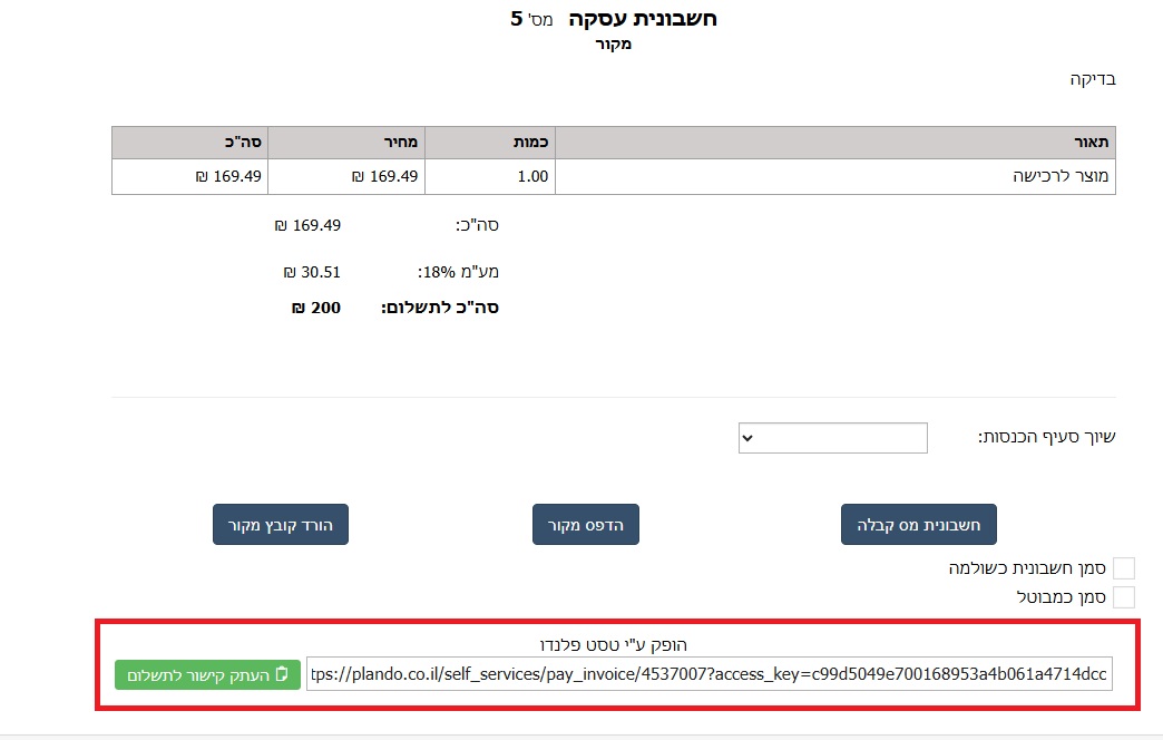 חשוב לדעת! יש לוודא כי בהגדרות ארגון < הגדרות נוספות < מסומן הצ'ק בוקס - תשלום חשבוניות בשרות עצמי